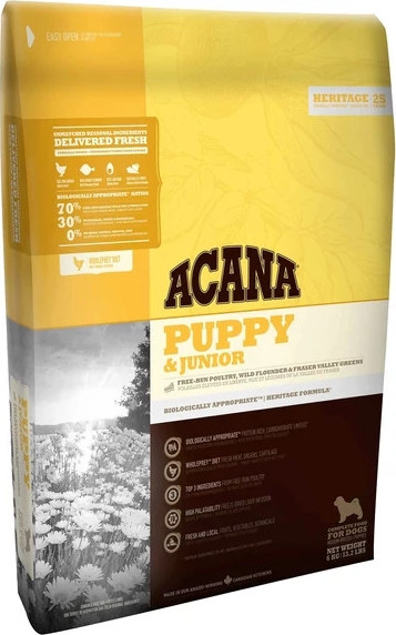 Acana Heritage Puppy & Junior 11,4 kg Teljes értékű, gabonamentes száraz eledel kölyök és fiatal kutyák számára