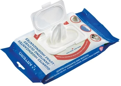 A FERTŐTLENÍTŐ, NEDVES TÖRLŐ KESZTYŰ – ARTERO eltávolítja a szennyeződéseket, a rossz szagokat és elpusztítja a szőr felületén lévő baktériumokat. Az egyszerűen nyitható és visszazárható csomagolásban forgalmazott termék a kutyák séták utáni tisztításának leggyorsabb és legpraktikusabb eszköze.