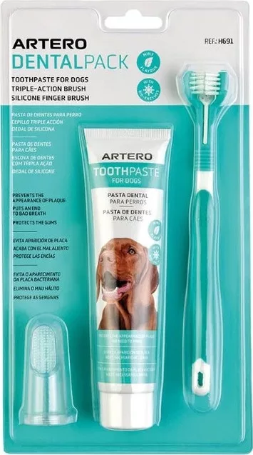 Az Artero fogápoló készlet kutyáknak egy teljes értékű fogápolási csomag, amely segít megelőzni a fogászati gondokat otthon, hatékonyan eltávolítja a lepedéket és fogkövet, valamint friss leheletet biztosít kedvencednek. Kiváló választás minden gazdi számára, aki tudatosan támogatja kutyája szájhigiéniai egészségét.