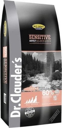 Összetevők: Szárított lazacfehérje (20%) (Omeg3, 6, 9 zsírsavak halolajból és olíva olajból), rizs (20%), rizsliszt (20%), burgonyaliszt, rizsfehérje, baromfizsír, cukorréparost, fehérje hidrolizát, lenmag, rizskorpa, baromfi fehérje hidrolizát, cikóriapor (FOS 1%), monokalcium-foszfát, halolaj (0,5%), élesztő, kalcium-karbonát, kálium-klorid, nátrium-klorid, olíva olaj (0,1%).