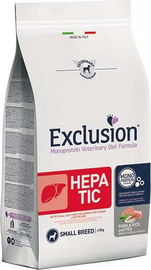 Az Exclusion Canine Hepatic Pork & Rice & Pea Small Breed kutya gyógytáp 2kg egy diétás száraz kutyatáp, amelyet kifejezetten kis testű kutyák számára fejlesztettek ki, akik májproblémákkal küzdenek. Az eledel könnyen emészthető és a májfunkció támogatását célozza, miközben megfelelő tápanyagokat biztosít a kutya egészségének fenntartásához.