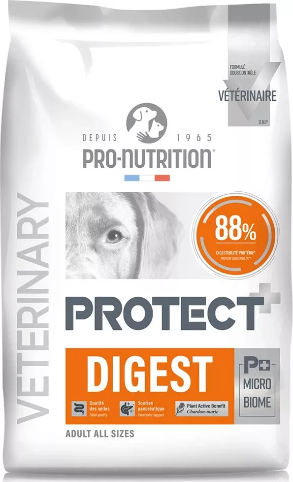 A Protect DIGEST a francia állatorvosi táplálkozástudomány és a gyógynövényes megoldások ötvözete. Kíméletes, hatékony és ízletes megoldás érzékeny gyomrú vagy emésztési problémákkal küzdő kutyák számára.