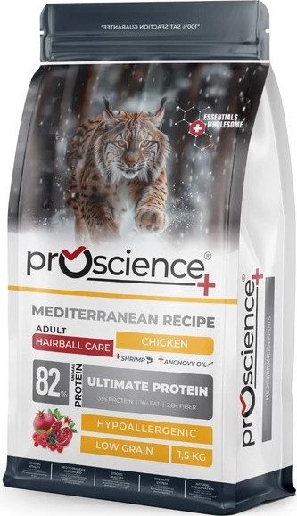 A Pro Science Adult Chicken Hairball Cat egy finom, mediterrán ihletésű receptúra, amelyet felnőtt macskák szőrlabda problémáinak enyhítésére fejlesztettek ki. Ideális eledel az egészséges emésztőrendszer, az erős immunrendszer és a fényes szőrzet fenntartásához.